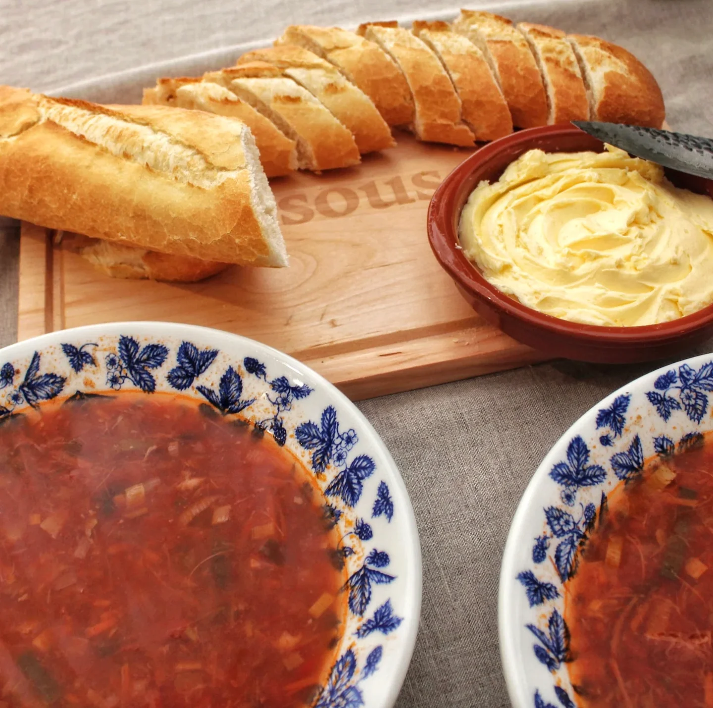 - Gerecht 1: Vers gemaakte ossenstaartsoep en heerlijk afgebakken stokbrood met zeezoutboter. Perfect als maaltijd soep!