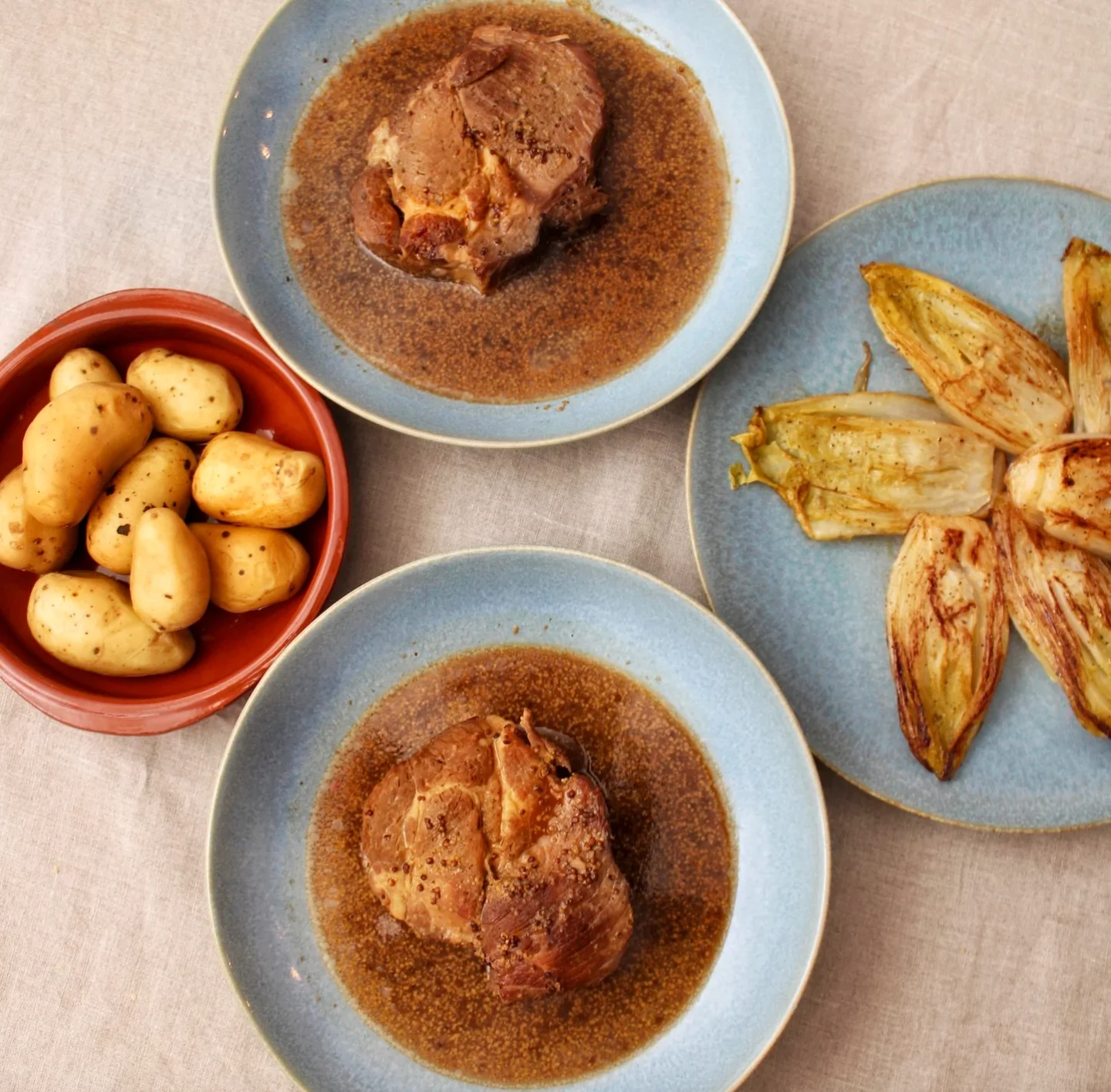 - Gerecht 3: Geniet van de procureur van Zuiderzee varken samen met een smaakvolle mosterd kalfjus. Naast de procureur serveer je gekookte aardappelen en drie stuks witlof die je in de pan kan bakken.