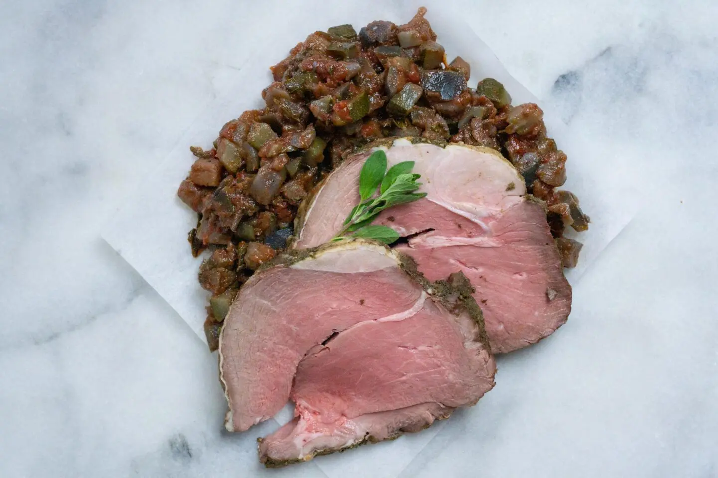 Lamsbout met tapenade van aubergine zit hier: