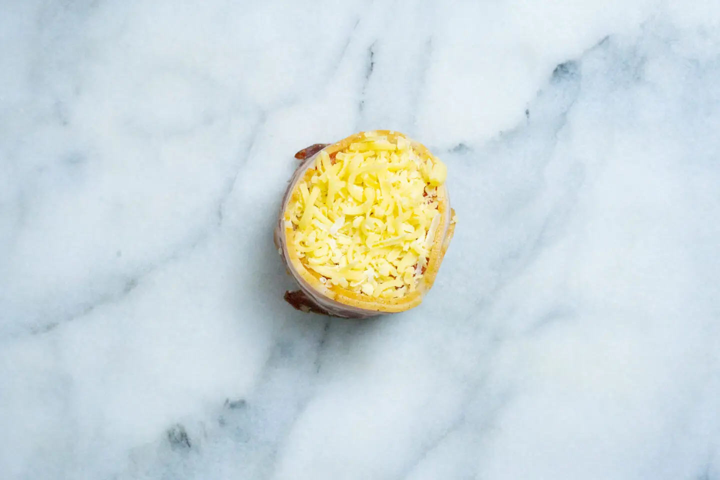 80% fijngemalen varkensvlees van de procureur (de nek), aangevuld met 10% broekspek (heel zacht spek uit de ham) voor de smeuïgheid en 10% Hollandse boerenkaas. Uitgestoken als burger en vervolgens omwikkeld met een plakje gedroogd, gerookt ontbijtspek en ruim afgetopt met gemalen Hollandse boerenkaas. Heerlijk voor de kinderen! Gaar de steak au fromage ruim 30 minuten in de oven op 140° C. Uiteraard gebruiken wij alleen maar zuiderzeevarkens voor dit product.